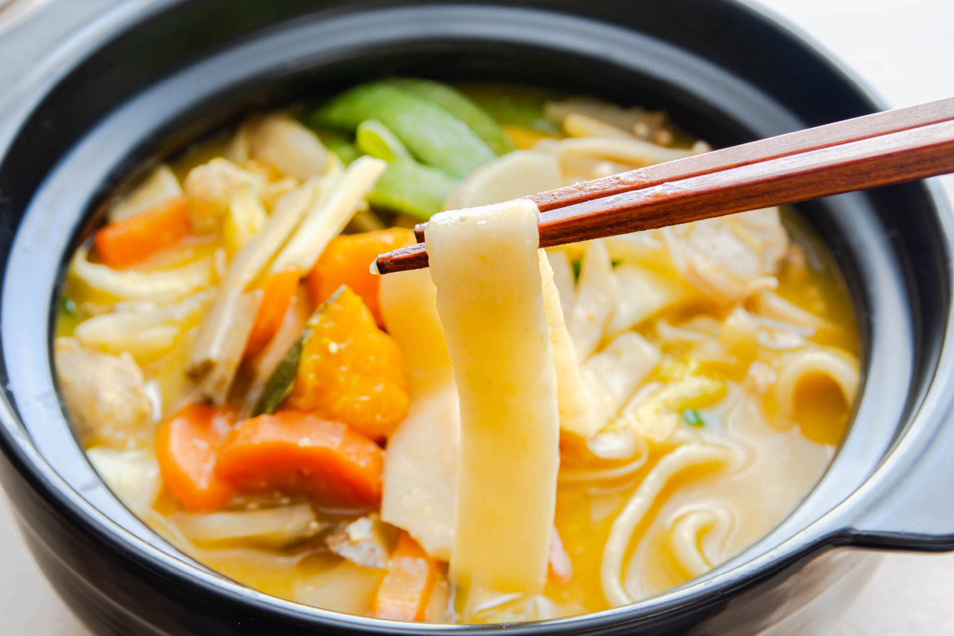 ・煮込んでもコシが残る、希少な“超幅広麺”